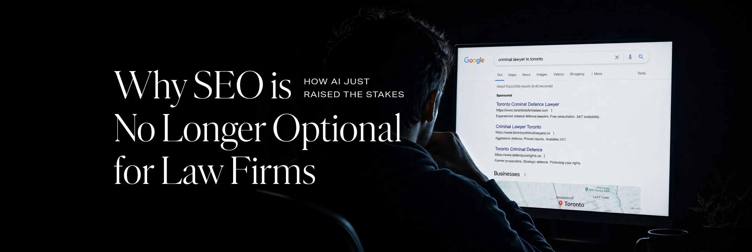 Someone typed "Toronto criminal defence lawyer," got ten blue links, and clicked around until something felt right. Your website's job was to be on that list (preferably near the top).